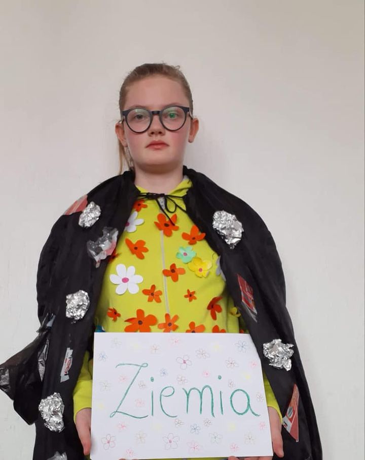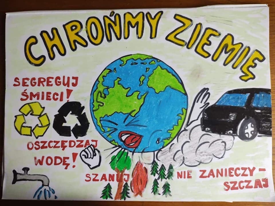 Z okazji Dnia Ziemi klasa 7 przygotowała scenkę przedstawiającą cztery żywioły: powietrze, ogień, woda i ziemia. Uczniowie wcielili się w rolę każdego z żywiołów .W tym celu każdy z uczniów samodzielnie przygotował strój mający przedstawiać odpowiednio: wodę, ogień, powietrze i ziemię. Zarówno uczniowie klasy 7 jak i 8 wykonali plakaty ilustrujące nie tylko piękno naszej planety ale również mogące pojawić się zagrożenia.