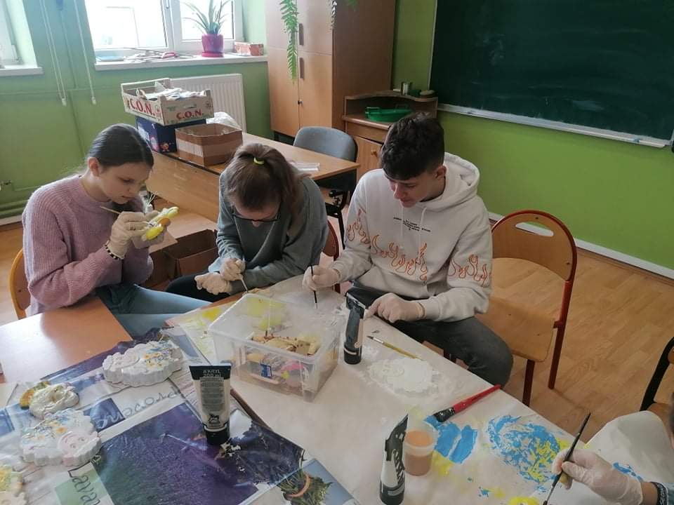 Pod czujnym okiem pani Małgorzaty Machnickiej rozpoczęliśmy dzisiaj warsztaty ozdób wielkanocnych !Chętni do działania są wszyscy. Wszystkie wykonane ozdoby będzie można kupić w szkole do dnia 15.04.2022 r. Cały dochód przeznaczamy na rzecz Emilki Kłak. Zaprasamy do szkoly.