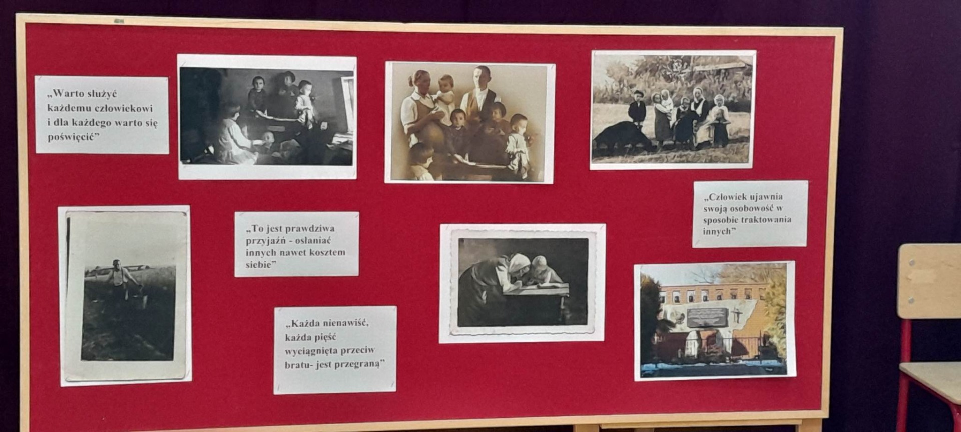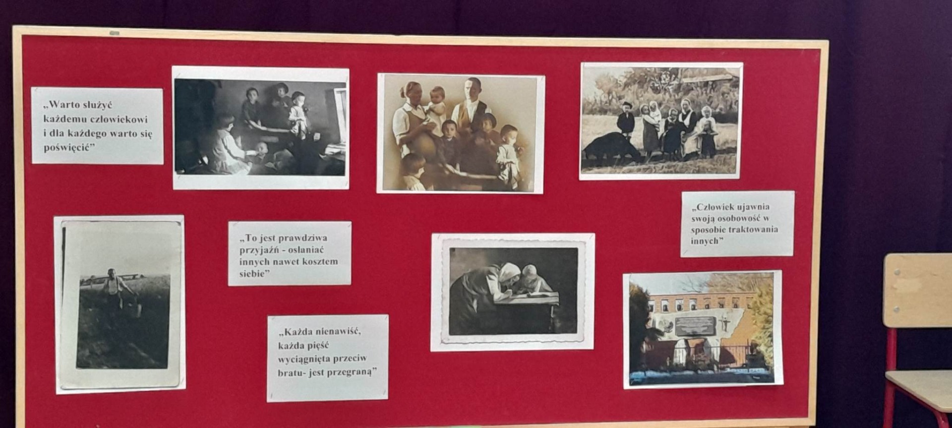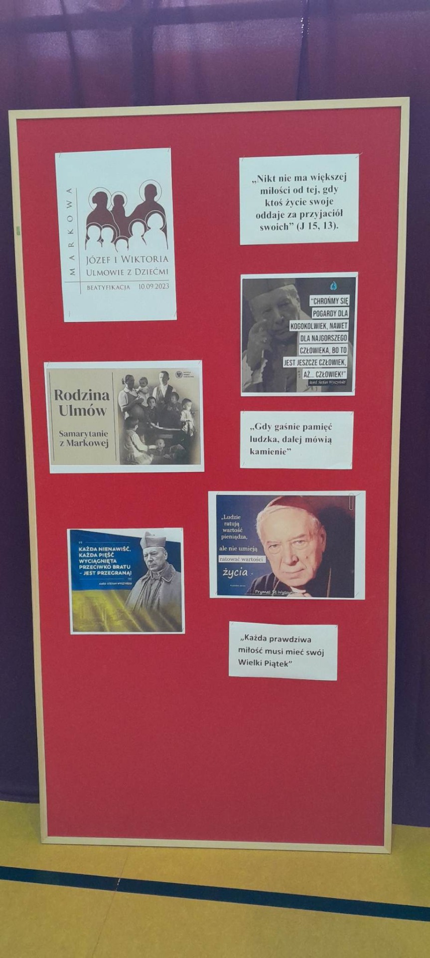 W dn. 14.06.2023r. odbyła się akademia poświęcona Beatyfikacji Rodziny Ulmów. Celem akademii było upowszechnienie wiedzy o Polakach, którzy z narażeniem życia ratowali osoby narodowości żydowskiej podczas II wojny światowej. Dla uczniów kl. 6-8 była to kontynuacja tematu po ubiegłorocznej wycieczce do Markowej.