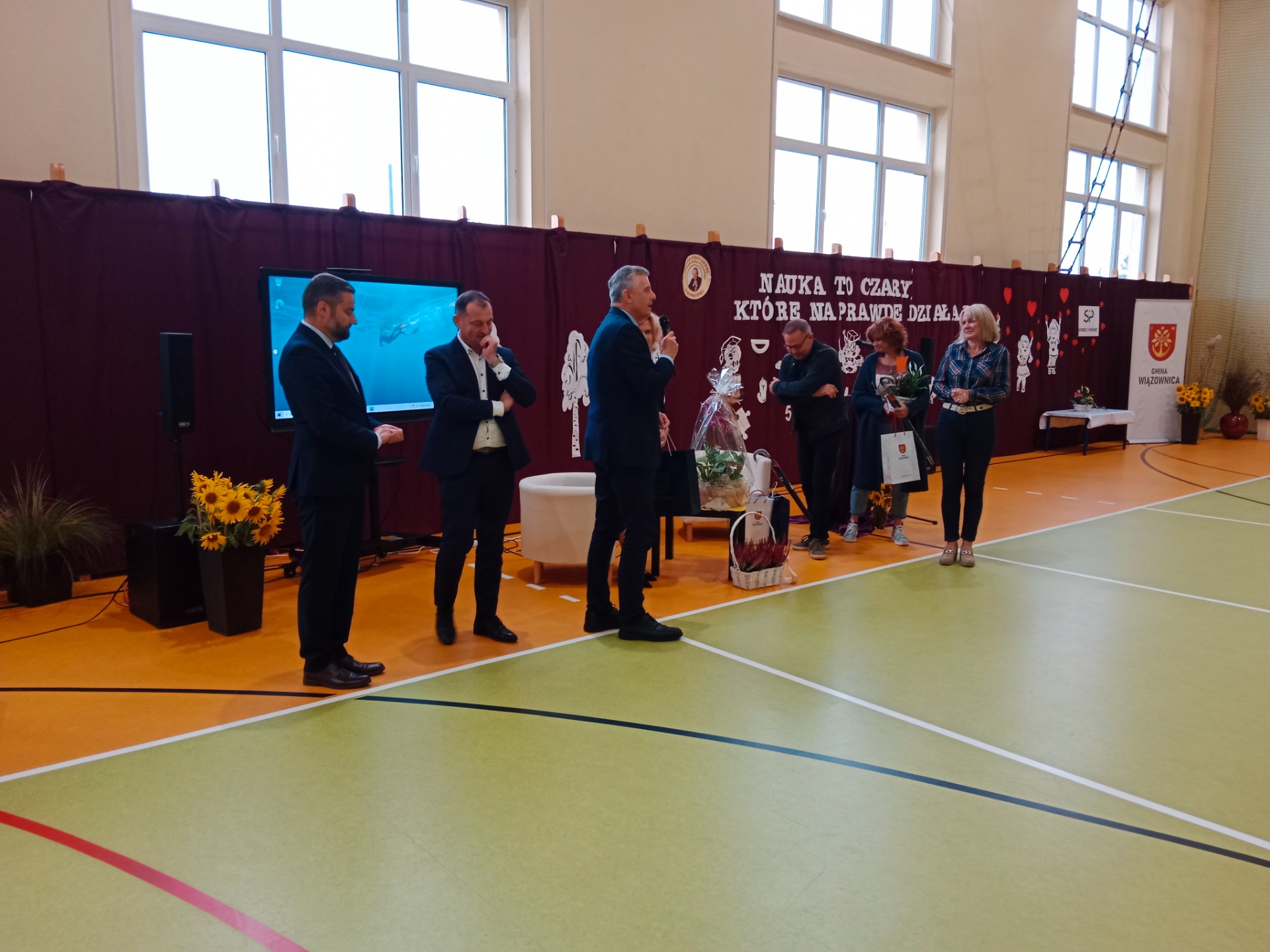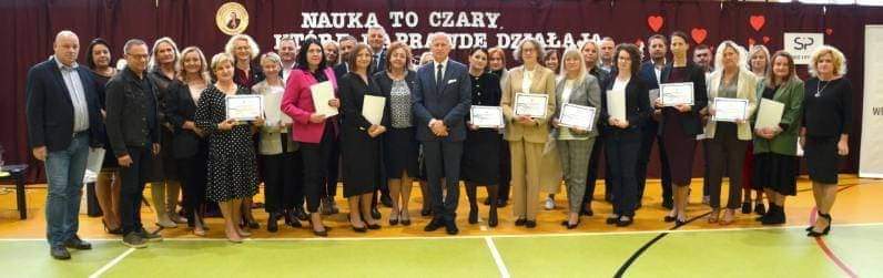 4 października pozostanie w historii Szkoła Podstawowa Manasterz na zawsze .Przeżywaliśmy całą społecznością szkolną piękny czas.Gośćmi honorowymi tego dnia był Profesor Roman Leppert wraz z Małżonką ,który przybył z wykładem:Co myślimy współcześnie o nauczycielu i co z tego wynika? Profesor spotkał się ze społecznością naszej szkoły,poznał nasze środowisko i poczuł atmosferę.W drugiej części uroczystości odbyło się wręczenie certyfikatów I i II stopnia szkołom z województwa podkarpackiego realizującym projekt SP! SERCE i POMOC .Nasza szkoła odebrała właśnie dzisiaj certyfikat II stopnia. Uroczystość odbywała się pod Patronatem Wójta Gmina Wiązownica Pana Krzysztof Strent ,którego gościliśmy w naszej szkole.Zaproszenie przyjęli również goście :Radny Sejmiku Województwa Podkarpackiego Pan Wiktor Koba ,przedstawiciele władz samorządowych Powiat Jarosławski Członek Zarządu Pan Andrzej Wyczawski ,który reprezentował Starostę Pana Kamil Dziukiewicz Starosta Powiatu Jarosławskiego Wiceprzewodniczącą Rady Powiatu Jarosławskiego i Dyrektor Gminne Centrum Kultury w Wiązownicy Pani Magdalena Rożek Radną Powiatu Jarosławskiego i Przewodniczącą Komisji Oświaty Panią Agnieszka Pieniążek Radna Miasta Jarosław Pani Agnieszka Joniec Jurczak Dyrektor Delegatury Kuratorium Oświaty w Rzeszowie Oddział w Przemyślu Pan Tomasz Dziumak ,który reprezentował Podkarpackiego Kuratora Oświaty Inspektor Oświaty Gmina Wiązownica Pani Anna Lampart ,Dyrektorzy i nauczyciele z Gminy Wiązownica oraz przedstawiciele szkół :dyrektorzy i koordynatorzy sieci szkół z 26 powiatów naszego Podkarpacia działających w Szkoły z sercem - realizujące projekt SP! Serce i pomoc.