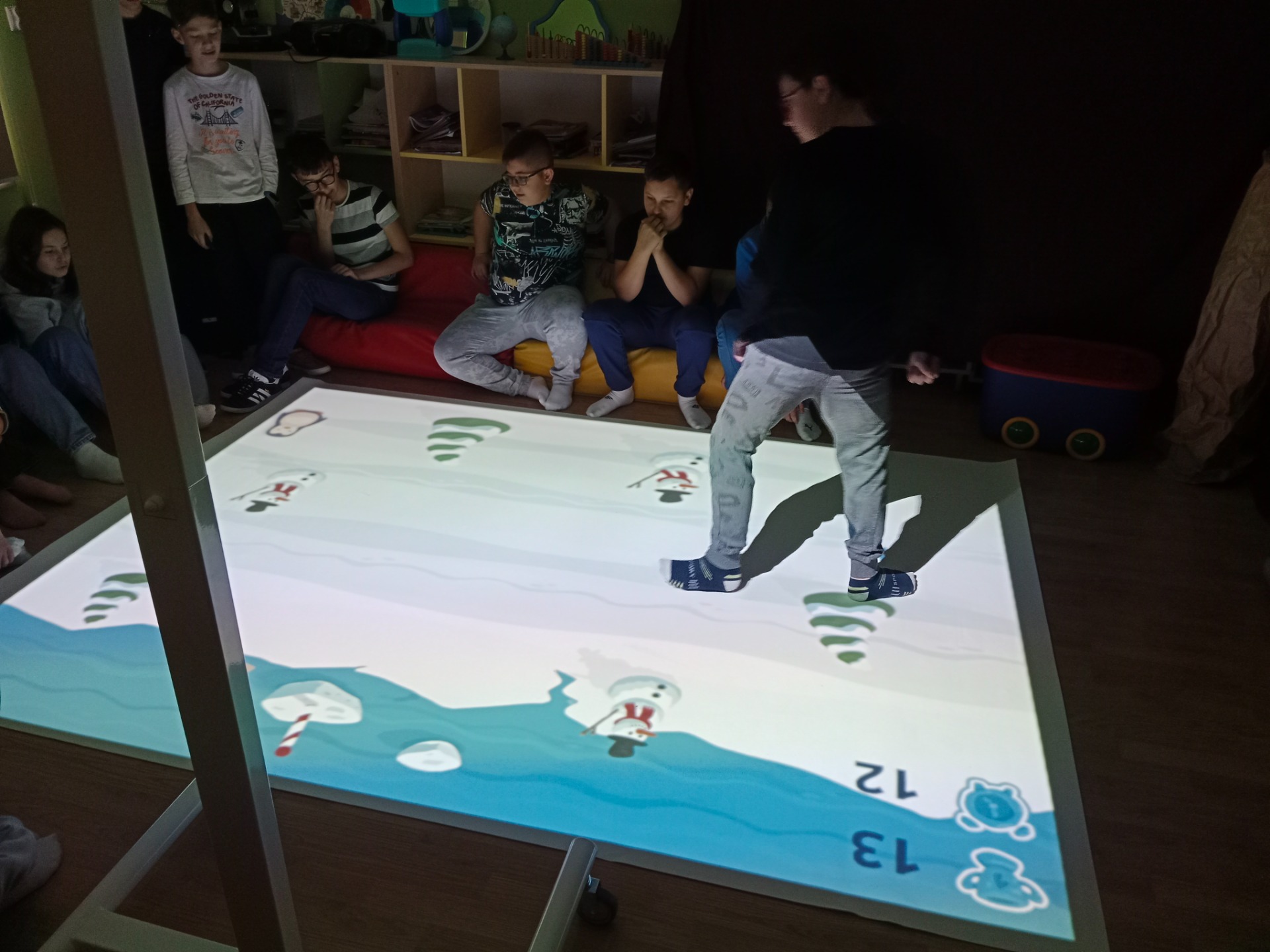 -zabawa z wykorzystaniem interaktywnej podłogi;