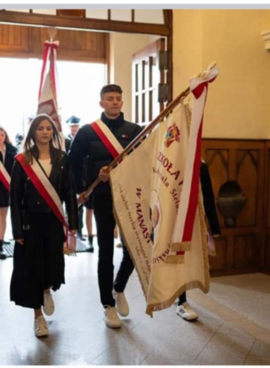 W dniu 11 listopada Poczet Sztandarowy w składzie :Zuzanna Florek ?Weronika Kłak ,Patrycja Nietrzeba ,Małgorzata Kloc ,Milosz Brzyski wraz z Panią Martą Suszyło reprezentował naszą szkołę w uroczystości Gminnych Obchodów Święta Niepodległości 🇵🇱🇵🇱