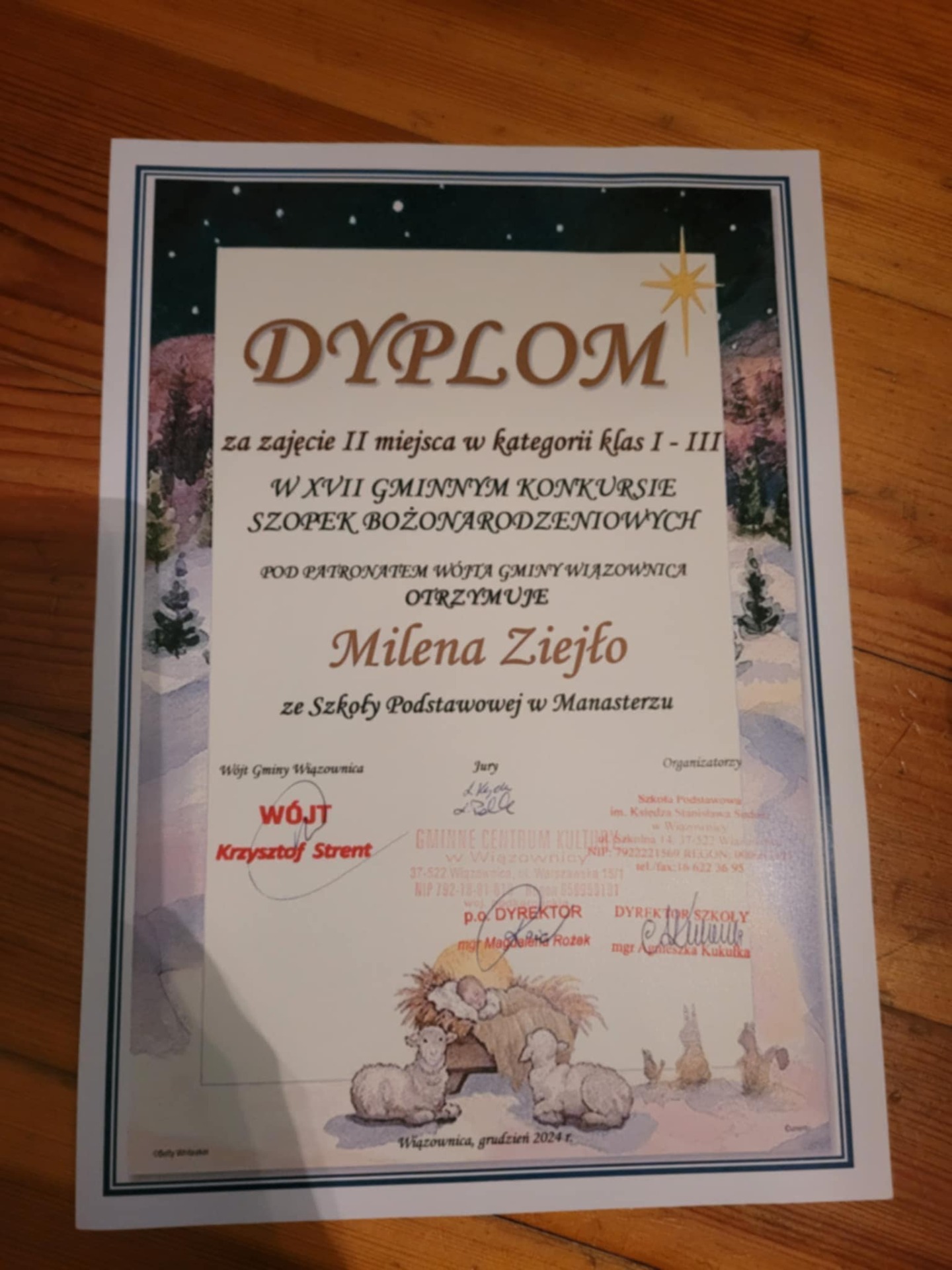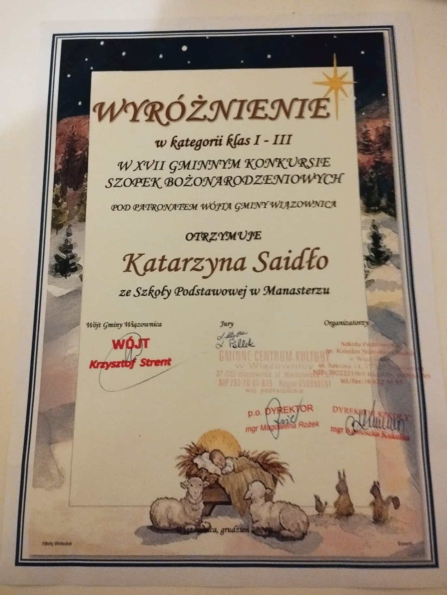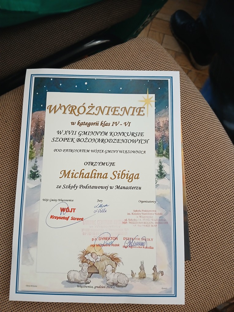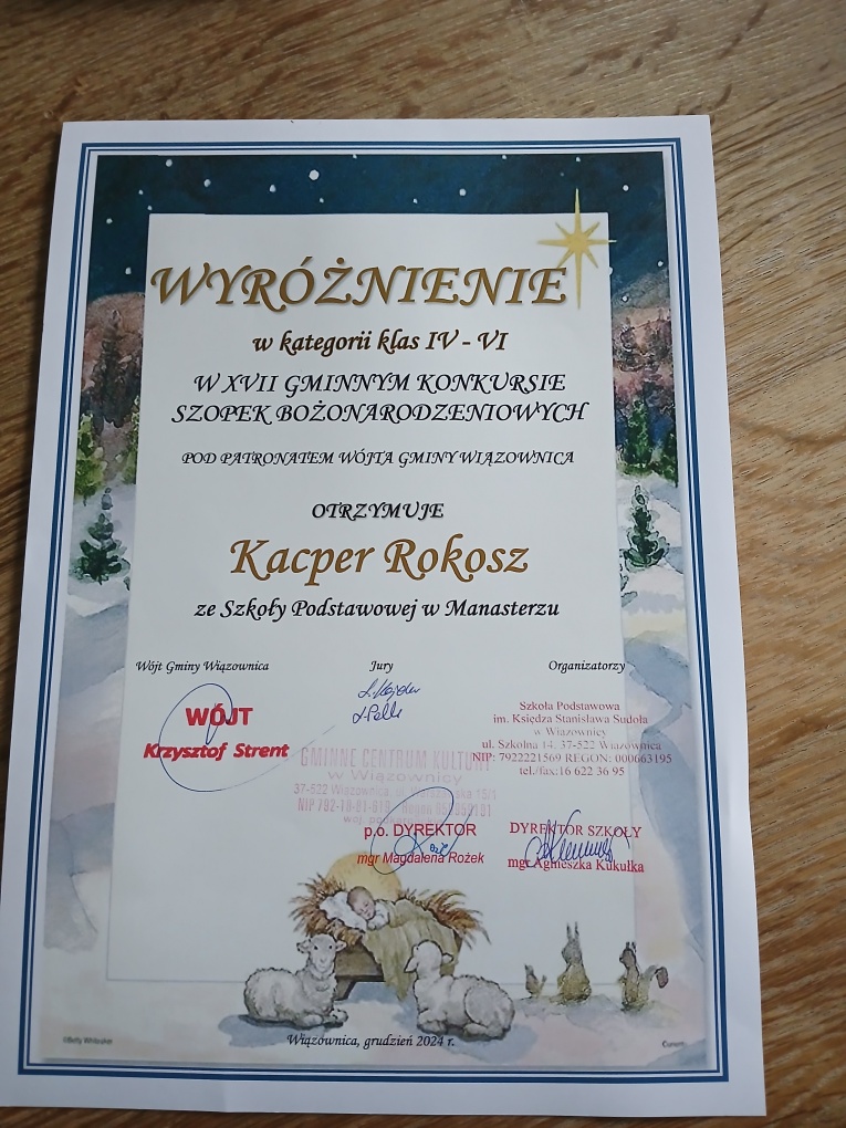 Uczniowie nagrodzeni w Gminnym Konkursie Szopek Bożonarodzeniowych: