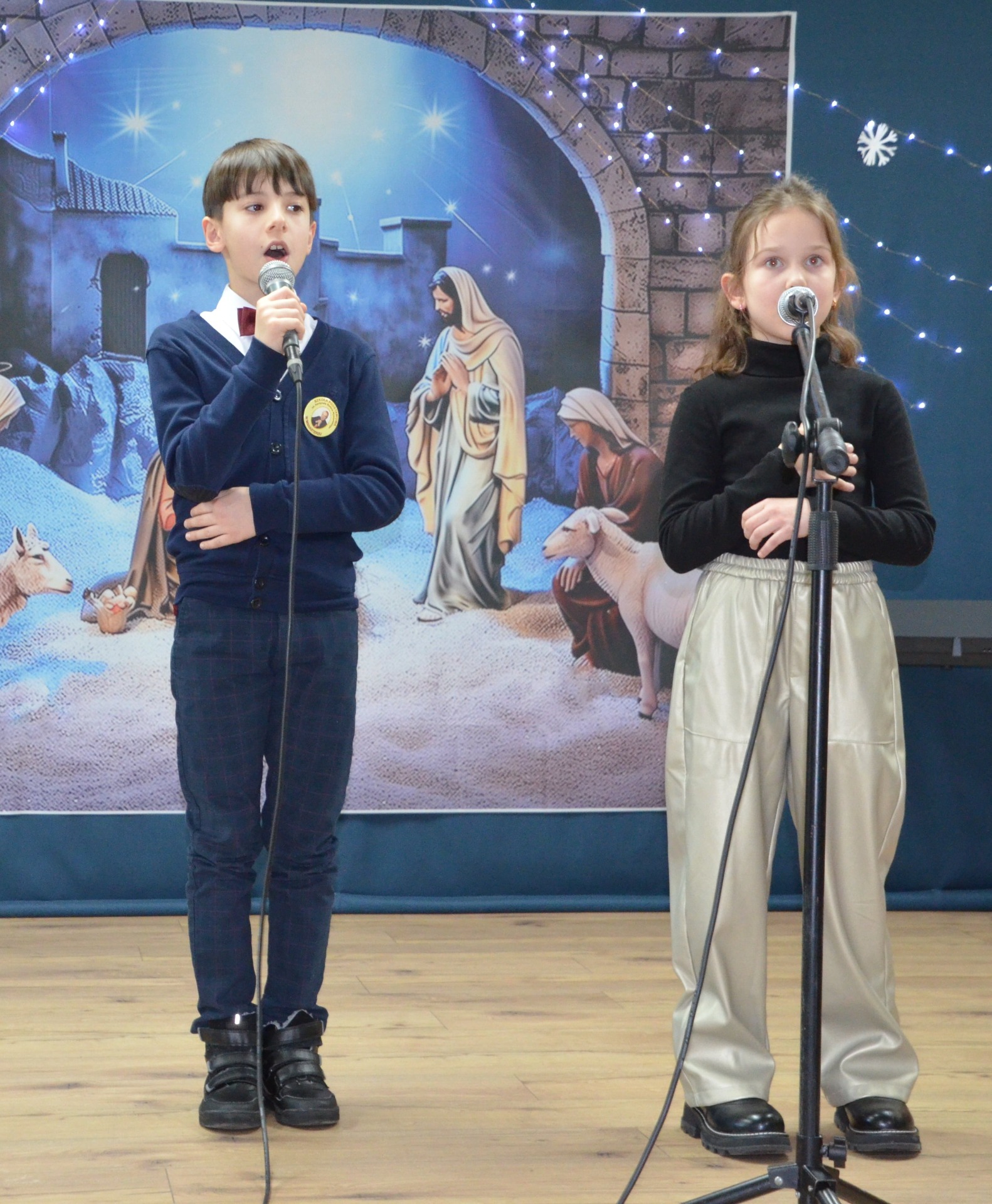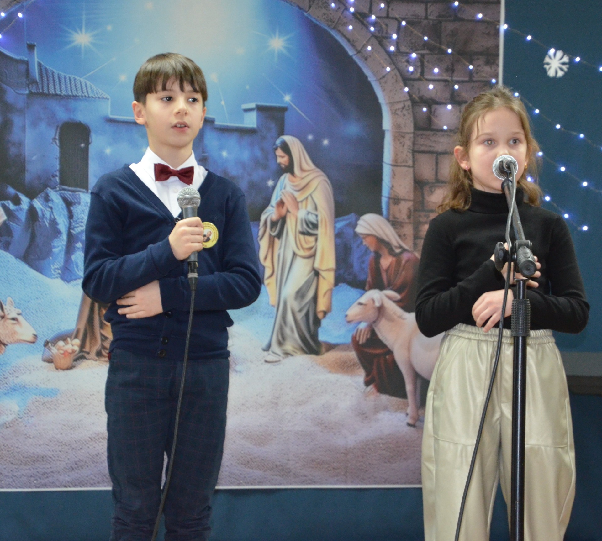 •Amelia Karpowicz, Oskar Kędzior kl. II, którzy wykonali pastorałkę „Noc Bożego Narodzenia