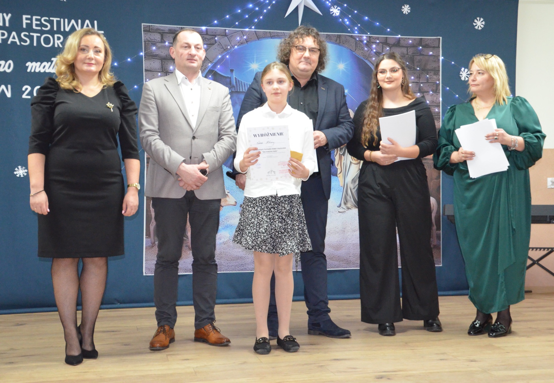 •Zespół „Nutki” kl. OA, kl. OB w składzie: Dominika Makuszak, Anna Florek, Gabriela Jurczak, Karolina Nosidlak, Sara Serafin, uczennice wykonały kolędę „Dzisiaj w Betlejem” i zdobyły WYRÓŻNIENIE