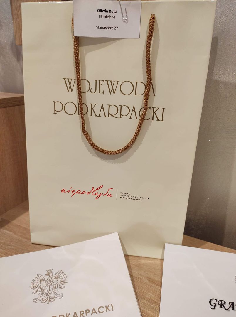 MIŁO NAM POINFORMOWAĆ, ZE NASZA UCZENNICA OLIWIA KUCA KL. IV ZAJĘŁA III MIEJSCE W KONKURSIE PLASTYCZNYM WOJEWODY PODKARPACKIEGO pt. "LUDZIE I WYDARZENIA KSZTAŁTUJĄCE POLSKIE PEJZAŻE".