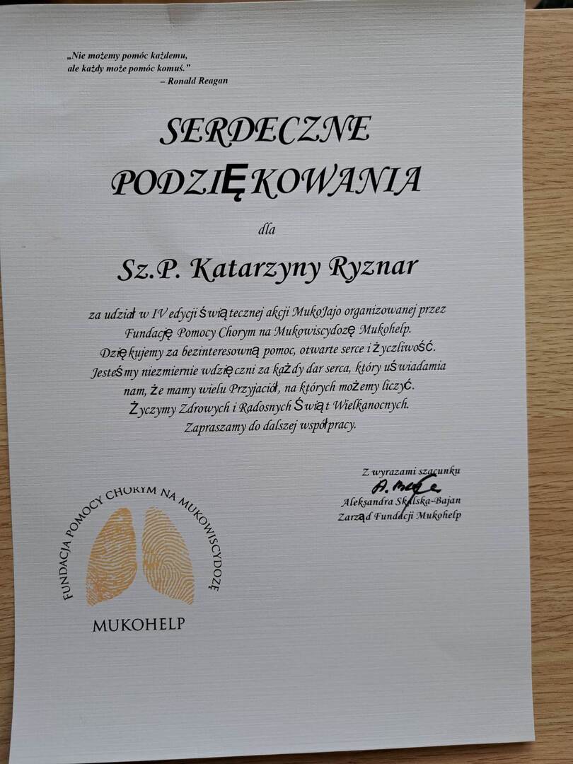 • Podziękowanie od MUKOHELP